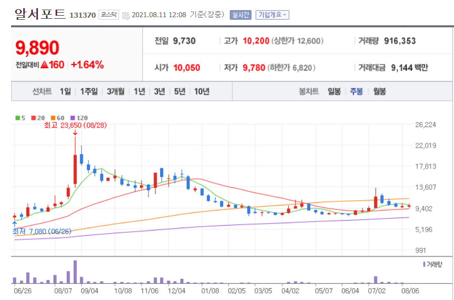 - 코로나19로 인해 제택근무가 증가하면서, 알서포트의 사용자수가 급증하면서, 기업실적에 대한 기대감등으로 상승했었다.