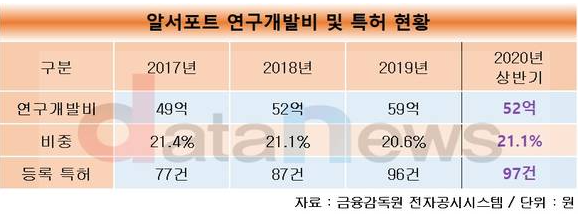 - 지속적으로 연구개발비에 투자하고 있으며, 상당수 기업이 실적부진에 빠진 코로나19 시대에 알서포트가 성공신화를 만들고 있는 가장 큰 요인으로 중 끊임없는 기술투자가 꼽히고 있다.