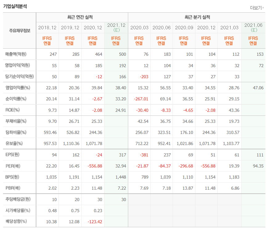 - 최근들어 다시 거리두기 4단계 격상에 힘입어서 상승하고 있는 상황을 보여주고 있다. 재무재표상으로는 성장하고 있는 모습을 그리는 만큼, 단순히 코로나19 특수로 인해 반짝하고 떨어질 기업으로 보이지는 않는다.