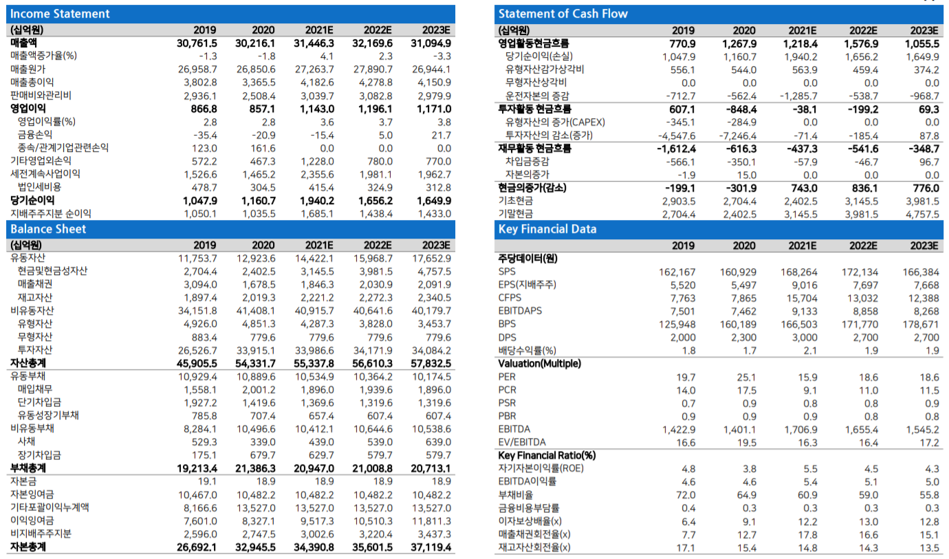 지지부진한 흐름을 보이던 주가가 반등에 성공했다. 표면적으로는 오너 사법 리스크 해소 가능성이 부각된 영향이나 핵심은 신 사업 진출 등에 따른 사업 경쟁력 강화 기 대감이 주가에 반영되었기 때문이다. 사측은 2분기 실적 설명회에서 자체 사업 및 자산 매각 과정에서 확보된 현금을 바이오, 친환경 및 신재생 에너지, 디지털 등의 신규사업 발굴 재원으로 활용하겠다고 밝혔다.