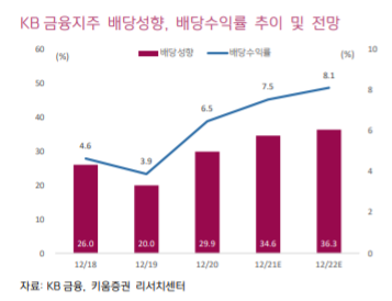 - KB금융은 성장주가 아닌 가치주의 성격을 가지고 있기 때문에 견조한 성장세를 유지하고 배당성향이 커지면 주가상승분+배당금으로 안정적인 수익을 내기위한 기업입니다.