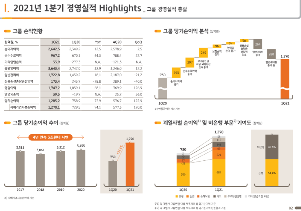 - 2021년 3월 전년동기 대비 연결기준 영업이익 68.1% 증가, 당기순이익 74.1% 증가.