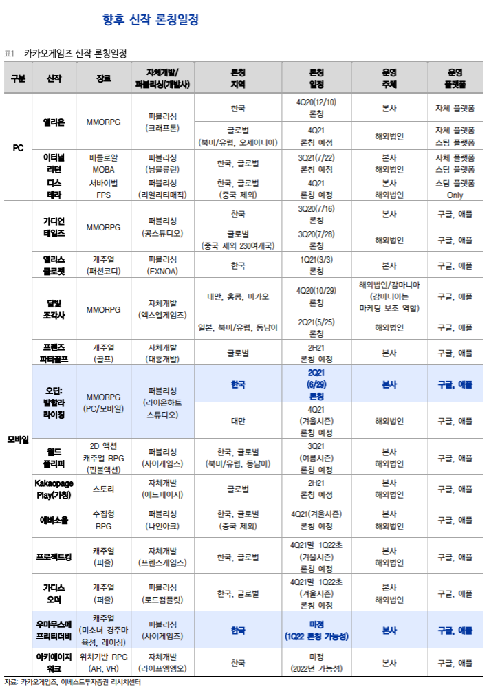 카카오게임즈 신작 일정