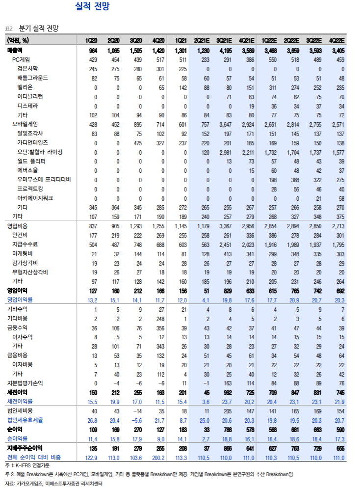 카카오게임즈 실적 전망