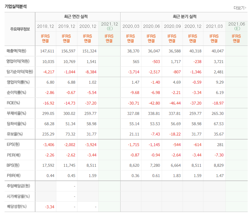 - 지난해 7월부터 코로나19 팬데믹 이후 급락한 이후에, 경영난을 겪으면서 주가는 상승하지 못하다가, 자사 매각과 유상증자등으로 리스크를 줄이고 안정국면으로 들어서면서 주가가 기대심리에 의해 상승하였다.
